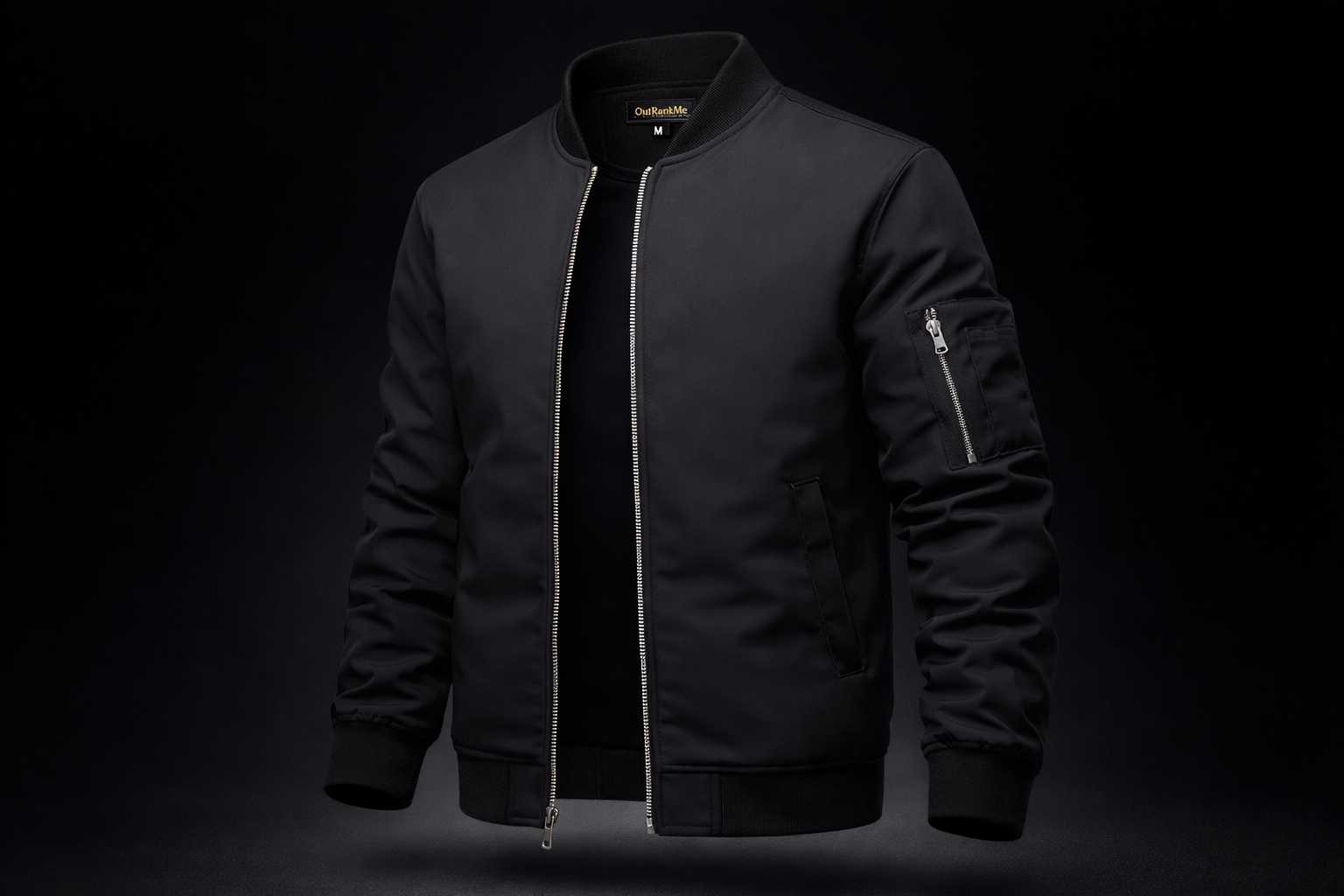 The OutRankMe™ Tactical Bomber Jacket is designed to help you wear your story, your rank, role, mission, family connection, or pride in service, through a clean, military-inspired jacket built for custom patches.
